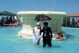 And then something really weird happened. Swimming in this fountain is remarkably popular. I cannot really say why, as it's not like it ever gets uncomfortably hot in Napier. So then I start wondering: Does the city council keep this fountain extra clean since they must know that the public uses it like a swimming pool? Then I start thinking: This is New Zealand; Jancie's favourite playground has a zip line.